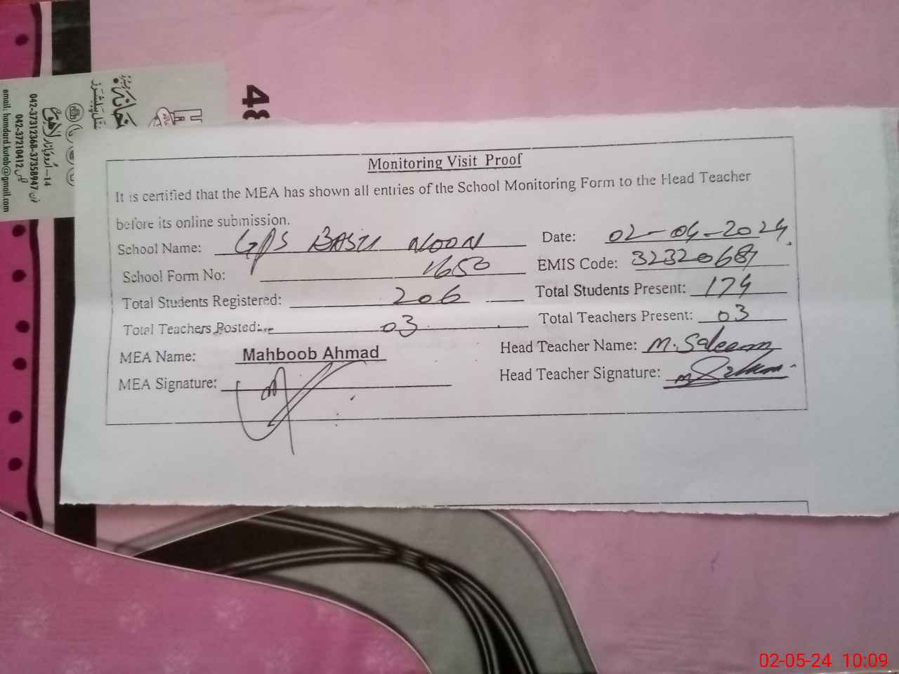 | Certified that this School was Inspected by the Undersigned MEA/DMO Today and the Information Stated Above is as Per Record. | |||||