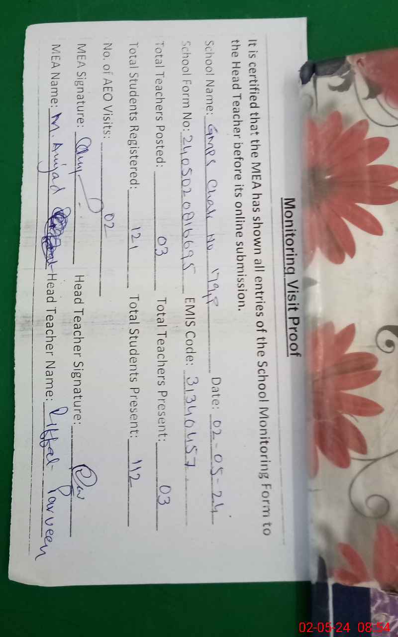 | Certified that this School was Inspected by the Undersigned MEA/DMO Today and the Information Stated Above is as Per Record. | |||||
