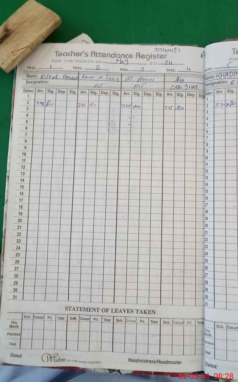 | Attendance Register | Head Teacher | MEA with School | Visit Proof |