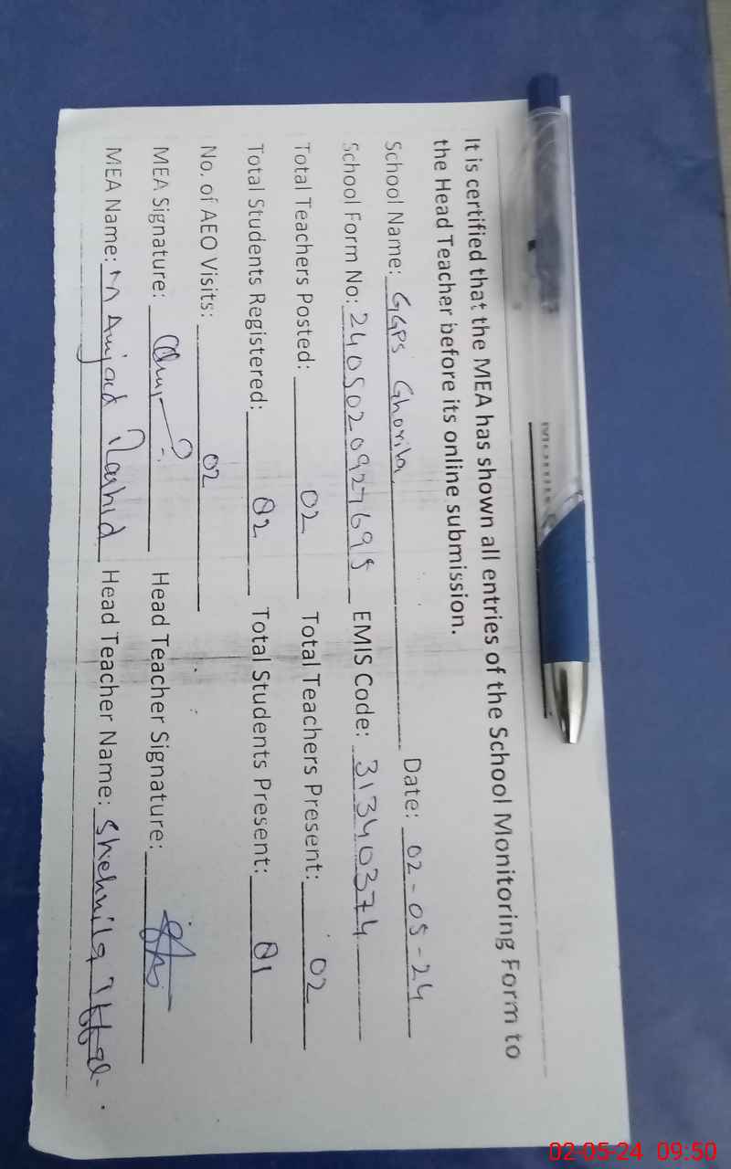 | EMIS Code: 31340374 | Name of School: GGPS GORRHILLA | |||