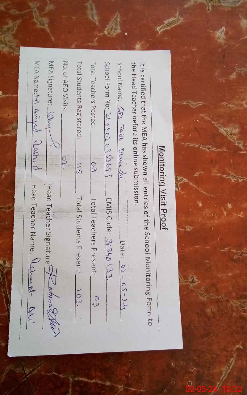 | EMIS Code: 31340133 | Name of School: GPS TALIB DHANDI | |||