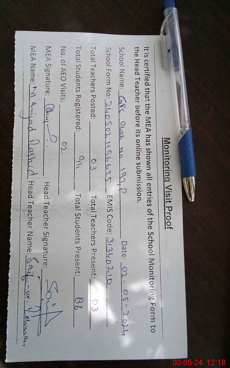 | Certified that this School was Inspected by the Undersigned MEA/DMO Today and the Information Stated Above is as Per Record. | |||||