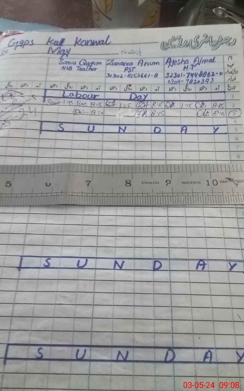 | CNIC | Full Name | Designation | R/C | Absence During Last Calender Month |