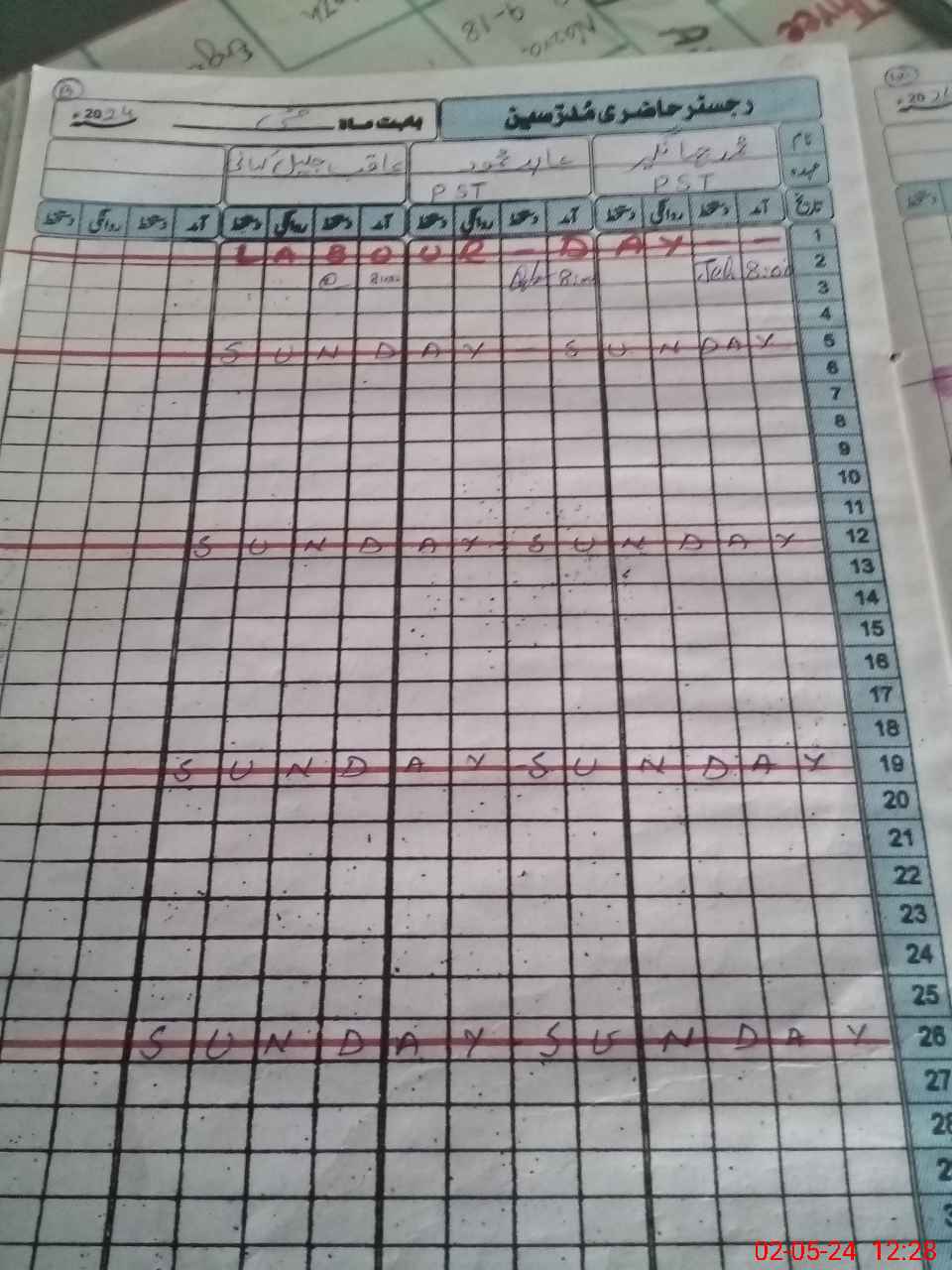 | CNIC | Full Name | Designation | R/C | Absence During Last Calender Month |