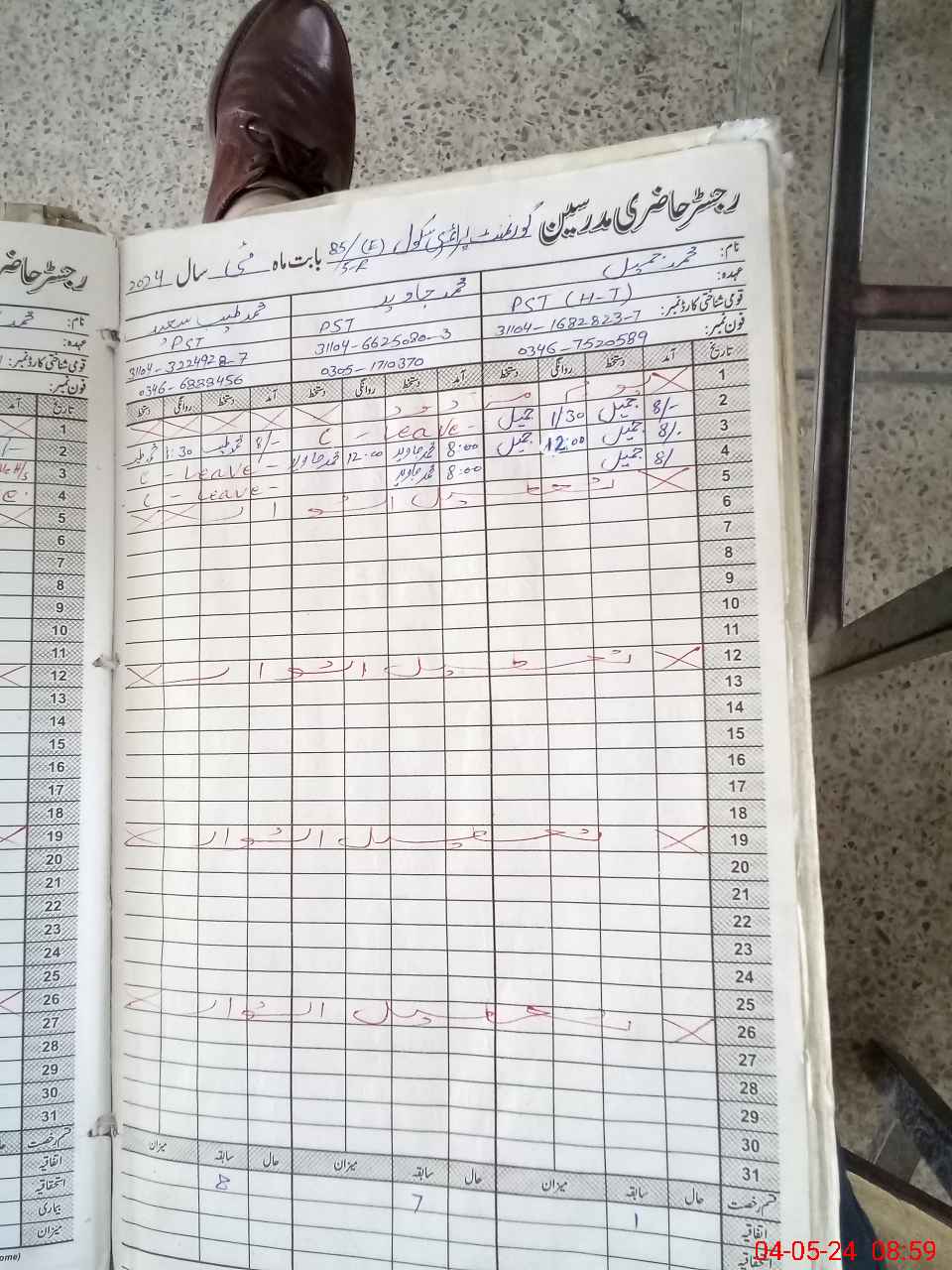 | Name: MTa**** Designation: (School Headmaster's/Headmistress's) PST Phone/Cell Number: 03**** |