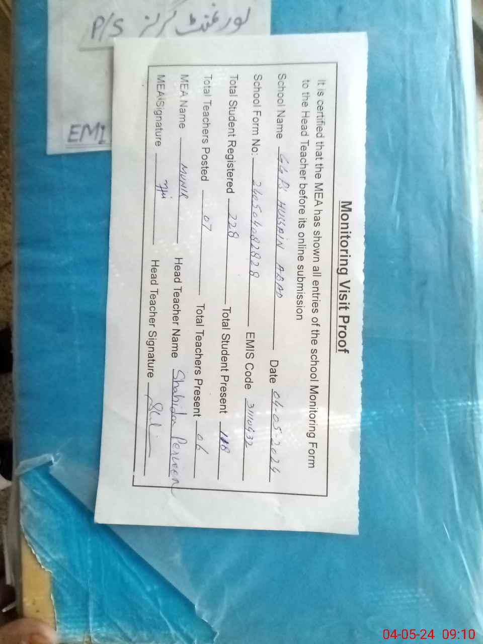| EMIS Code: 31110432 | Name of School: GGPS HUSSAIN ABAD | |||