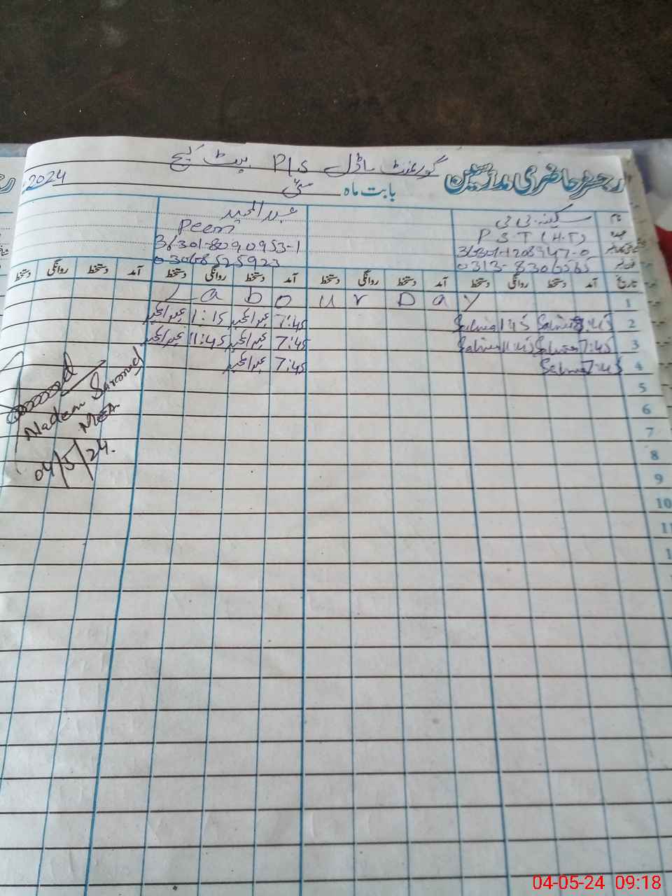 | Name: Ha**** Mu**** Designation: (School Headmaster's/Headmistress's) PST Phone/Cell Number: 03**** |