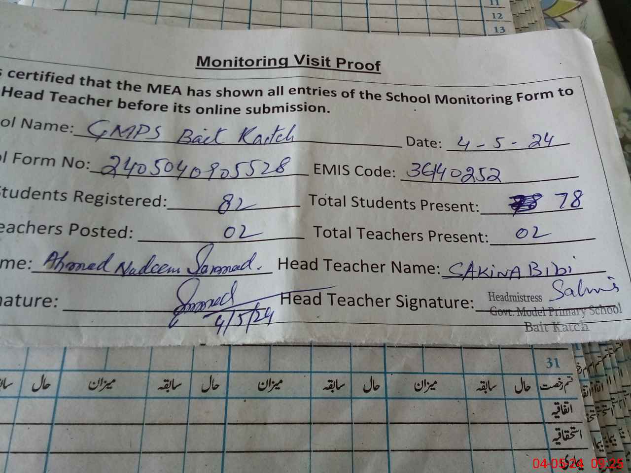 | EMIS Code: 36140252 | Name of School: GMPS BAIT KAITCH | |||