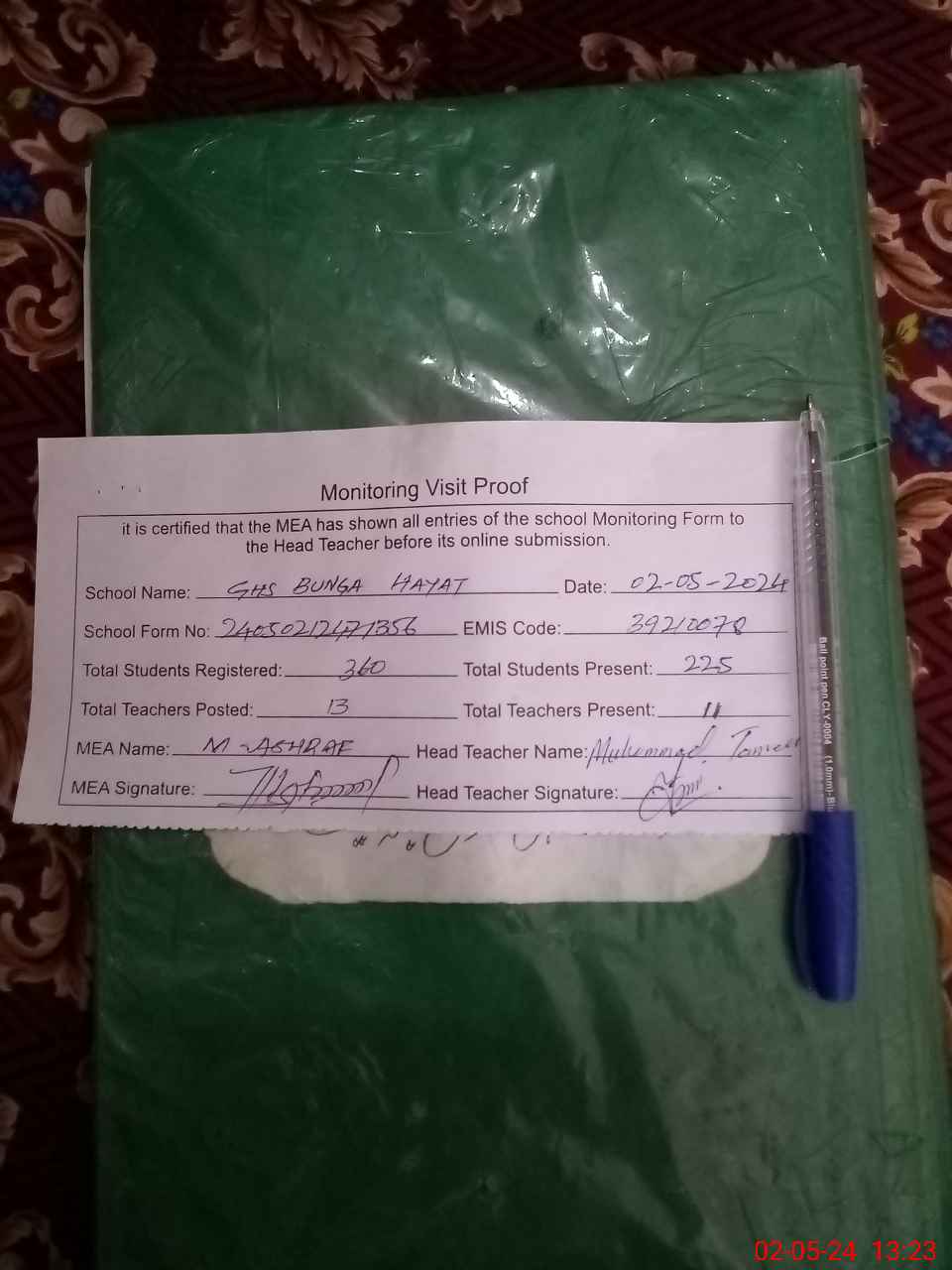 | EMIS Code: 39210078 | Name of School: GHS BUNGA HAYAT | |||
