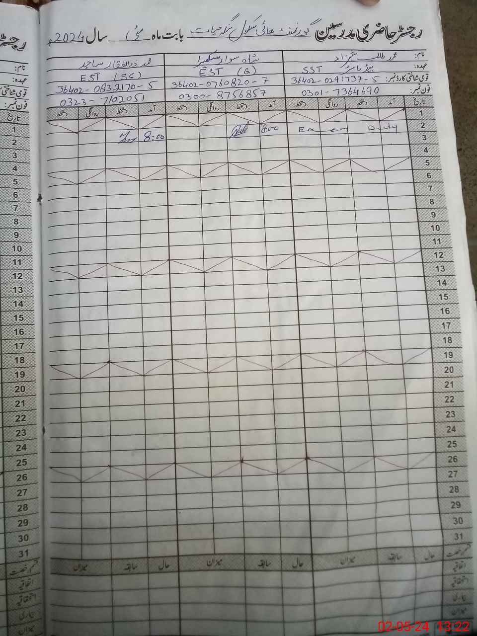 | 35**** | Sh**** Al**** | 1 | 0 | 15 | 0 | 0 | 0 | 0 | 0 | 0 | 0 | Exam Duty | |