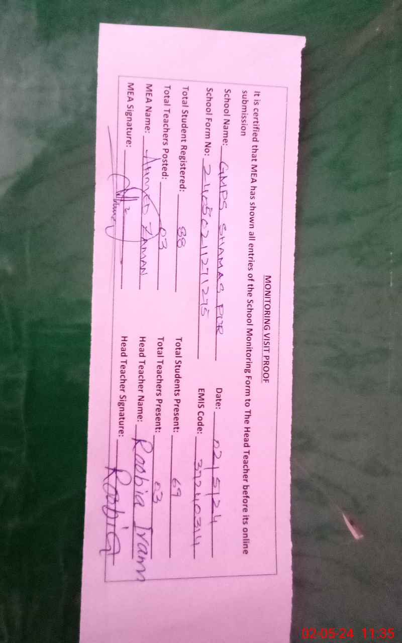 | EMIS Code: 37240314 | Name of School: GMPS SHAMAS PUR | |||