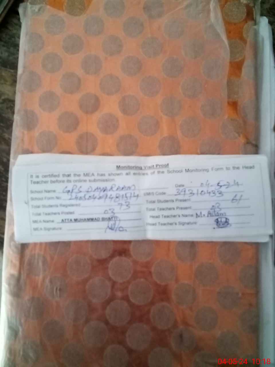 | EMIS Code: 39310433 | Name of School: GPS DIYA RAAM | |||