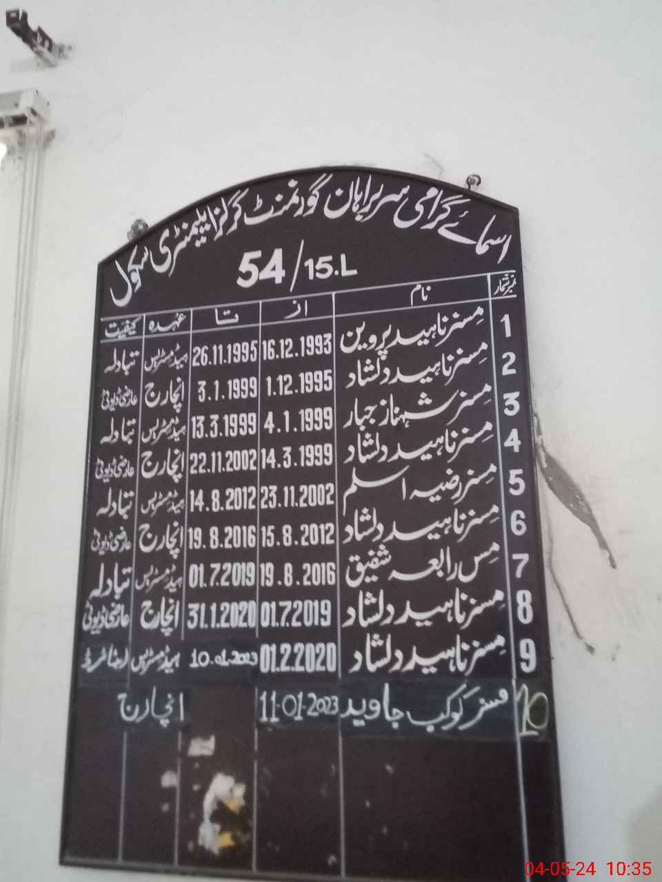 | EMIS Code: 36430094 | Name of School: GGES 54/15-L, MIAN CHANNU | |||