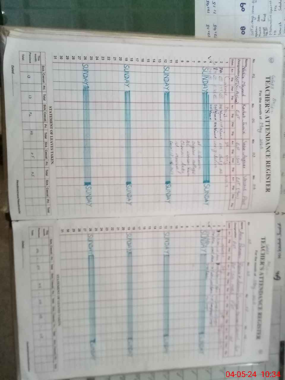 | No. of Students Present - Male | 6 | 0 | 8 | 6 | 4 | 4 | 3 | 3 | 0 | 0 | 0 | 34 | ||||
