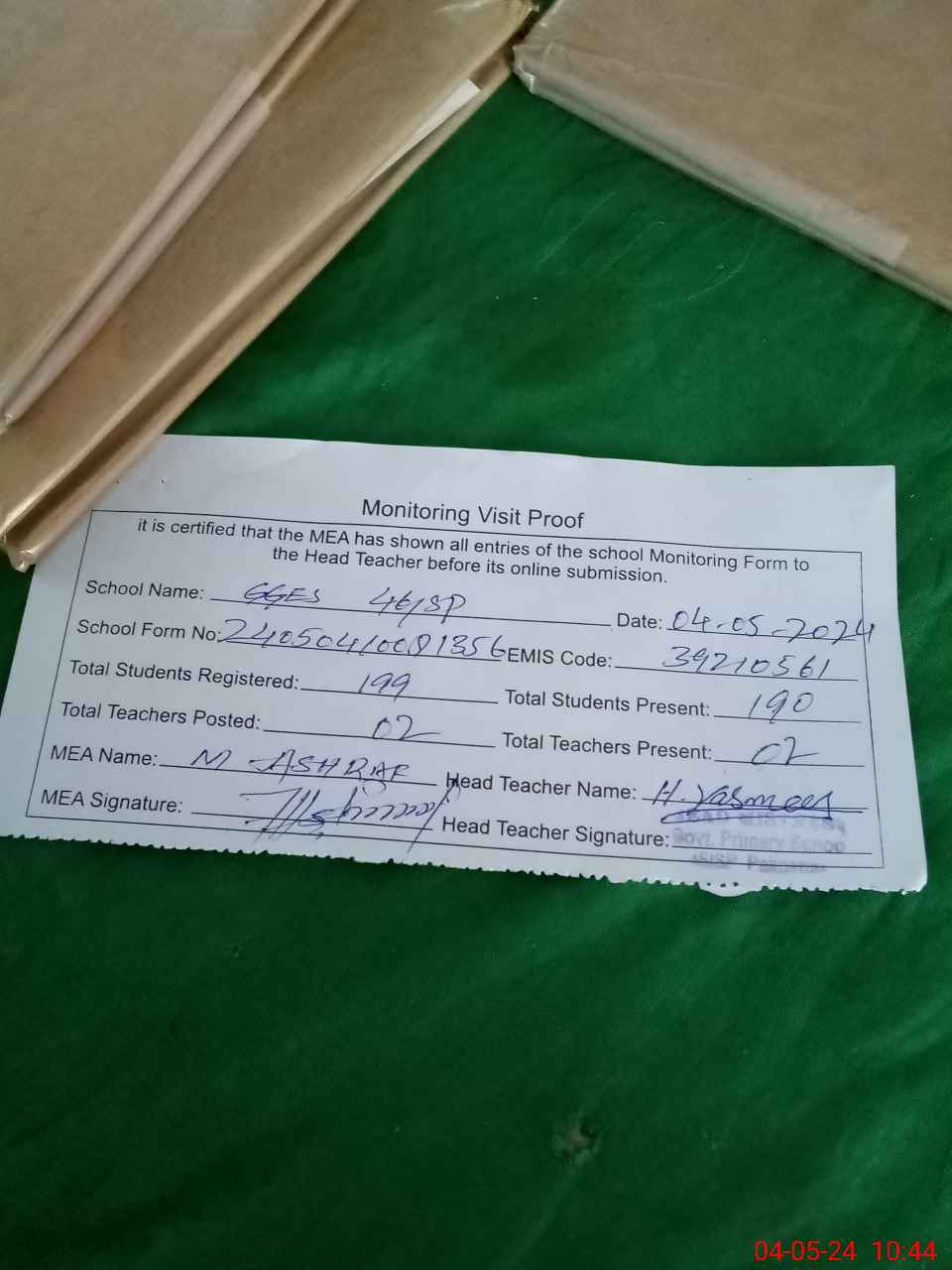 | EMIS Code: 39210561 | Name of School: GGES 46/SP | |||