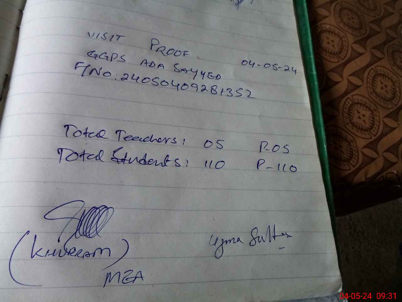 | Attendance Register | Head Teacher | MEA with School | Visit Proof |