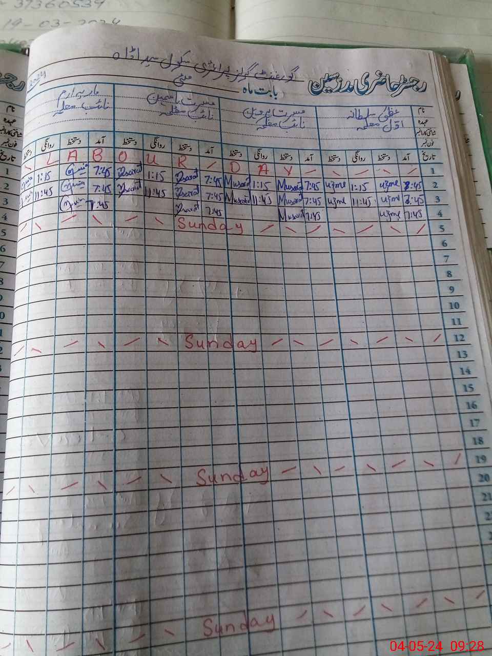 | CNIC | Full Name | Designation | R/C | Absence During Last Calender Month |
