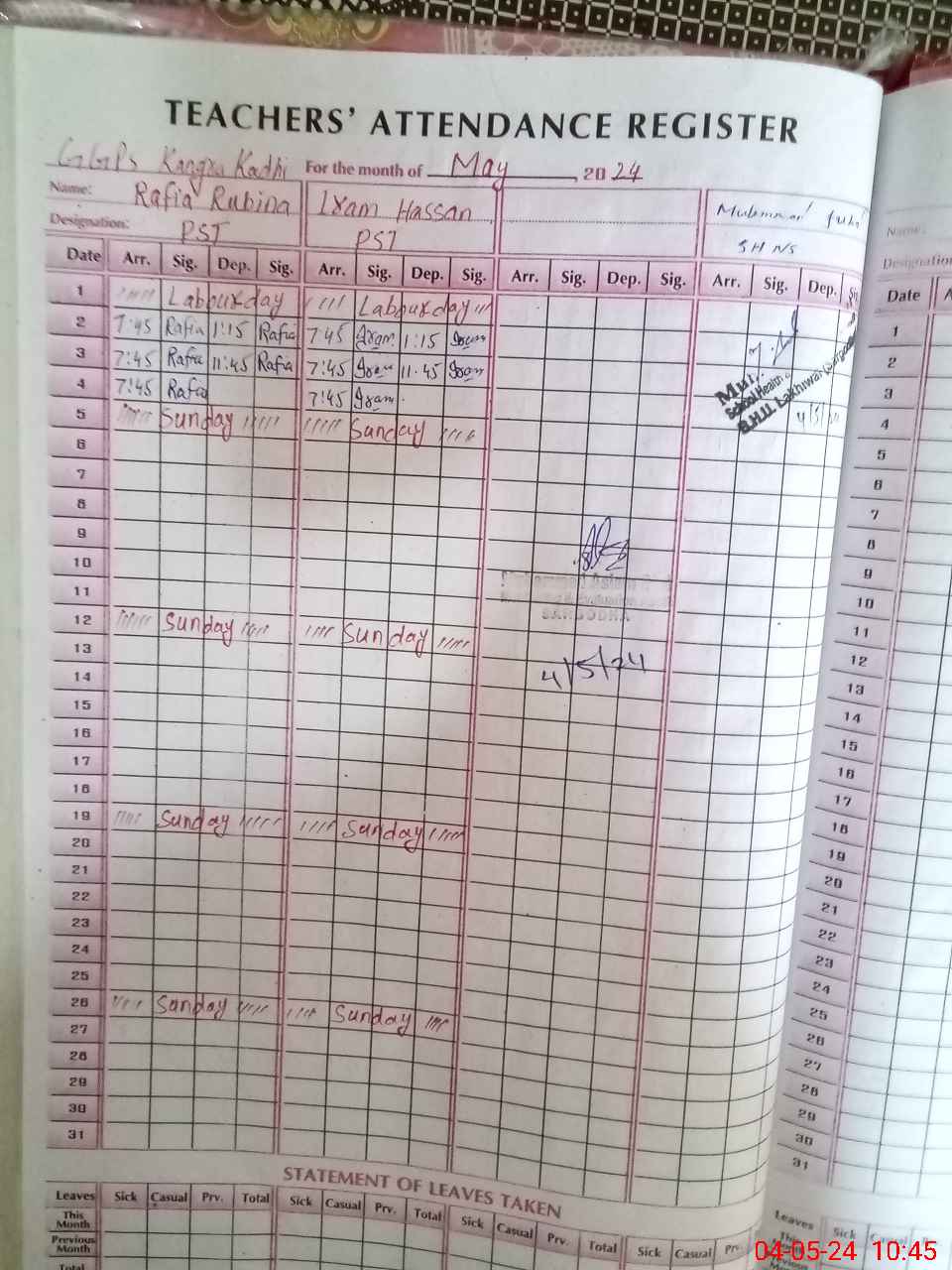 | Leave | Duty | Absent | Maternity | Medical | Ex- Pak |