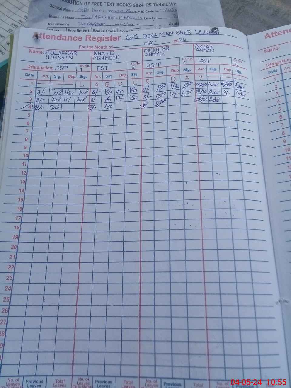 | Name: ZU**** HU**** Designation: (School Headmaster's/Headmistress's) PST Phone/Cell Number: 03**** |