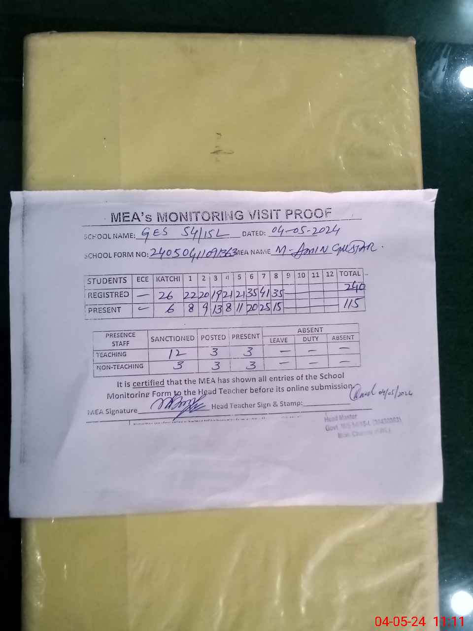 | EMIS Code: 36430053 | Name of School: GES 54/15-L, MIAN CHANNU | |||