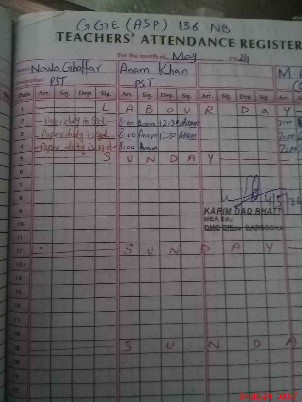 | 38**** | Na**** Gh**** | PST | Regular | 0 | 0 | 0 | 0 | 0 | 0 | 0 | 0 | 0 | Exam Duty |