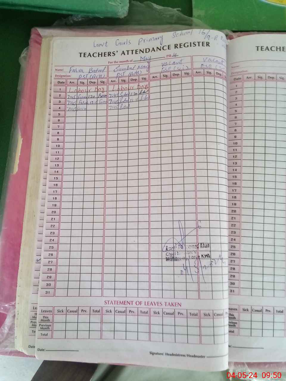 | Name: Fa**** Ba**** Designation: (School Headmaster's/Headmistress's) PST Phone/Cell Number: 03**** |