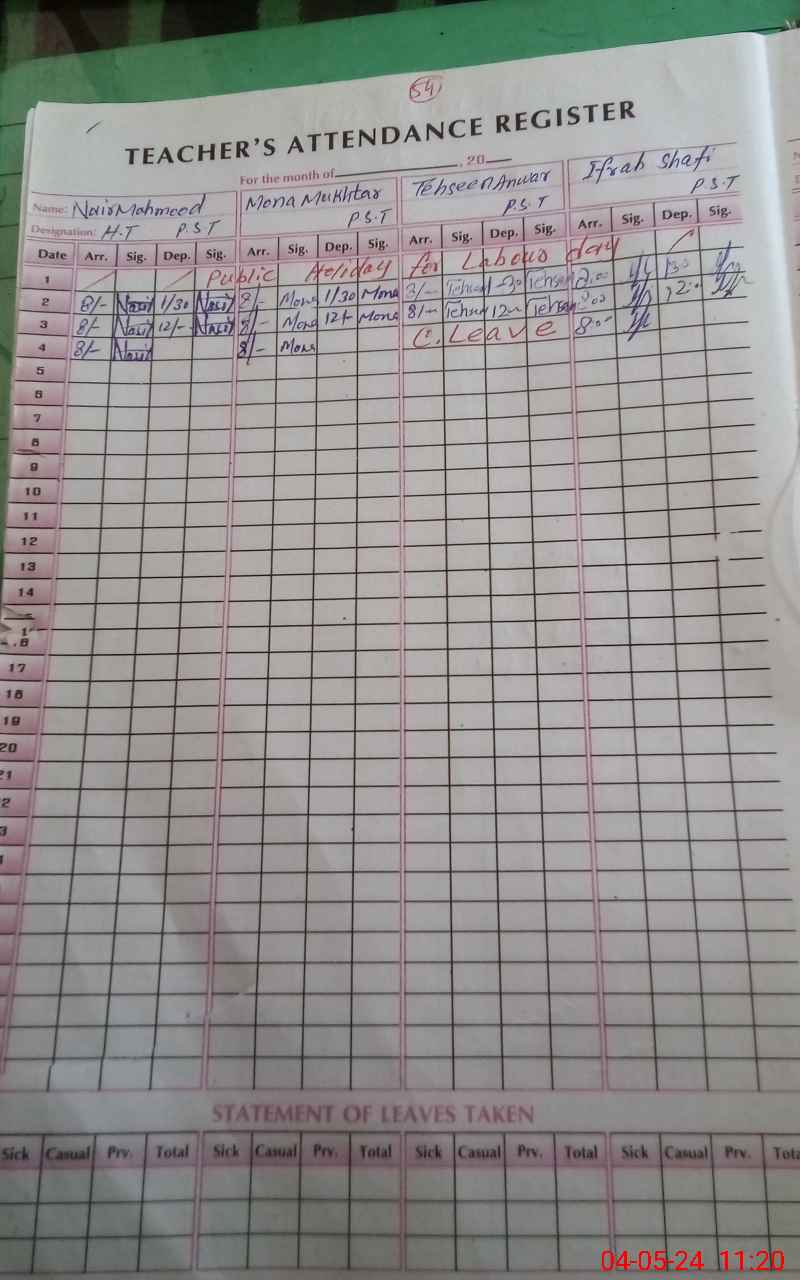 | Attendance Register | Head Teacher | MEA with School | Visit Proof |
