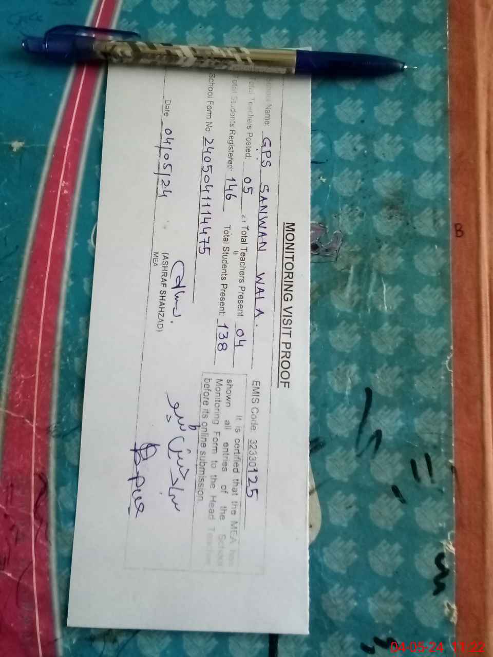 | EMIS Code: 32330125 | Name of School: GPS SAWAN WALA | |||