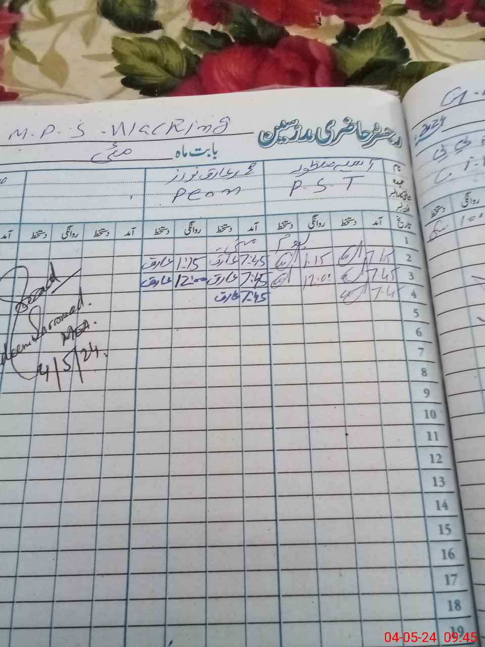 | Name: Aa**** Ma**** Designation: (School Headmaster's/Headmistress's) PST/PTC/JV Phone/Cell Number: 03**** |