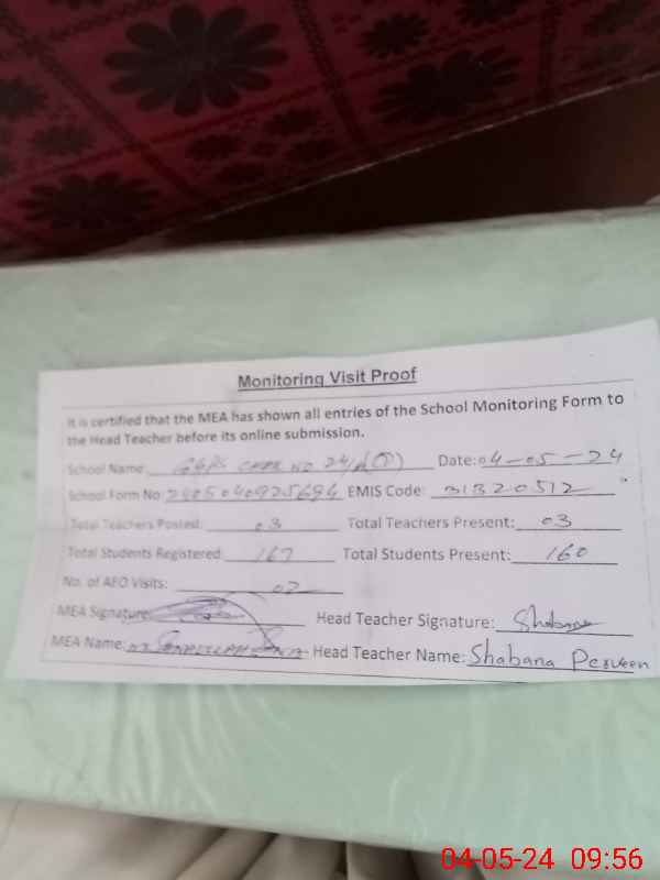 | EMIS Code: 31320512 | Name of School: GGPS CHAK NO.24/A | |||