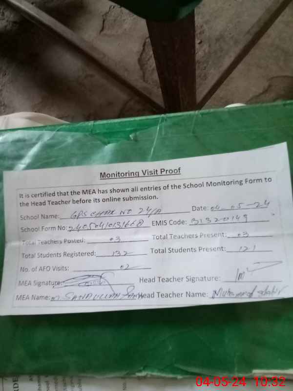 | EMIS Code: 31320149 | Name of School: GPS 24/A QADEEM | |||