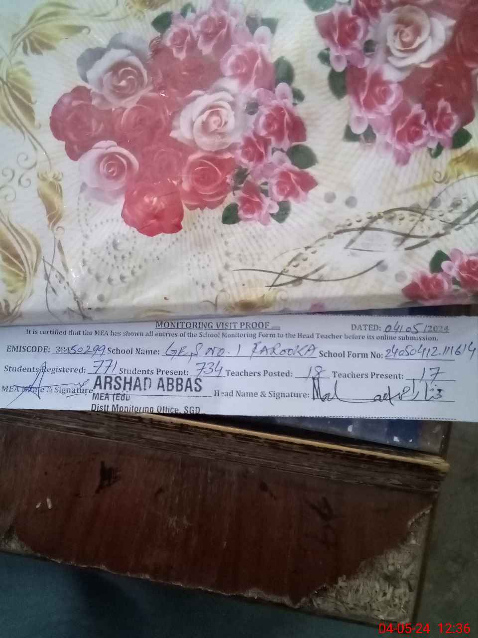 | Attendance Register | Head Teacher | MEA with School | Visit Proof |