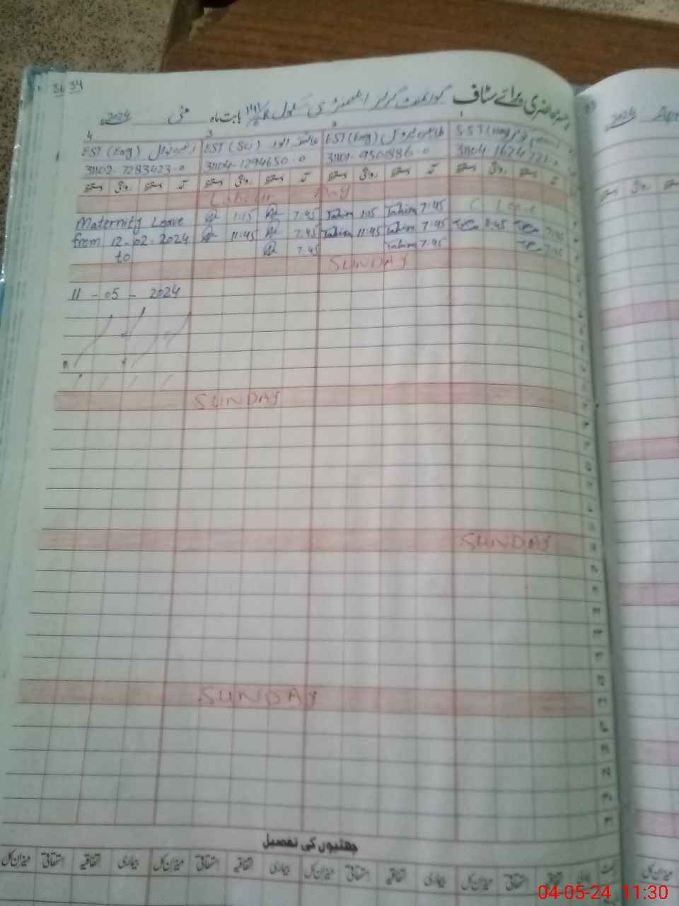 | 31**** | Ru**** No**** | Regular | 30 | 0 | 0 | 30 | 0 | 0 | 0 | 0 | 0 | Maternity | |