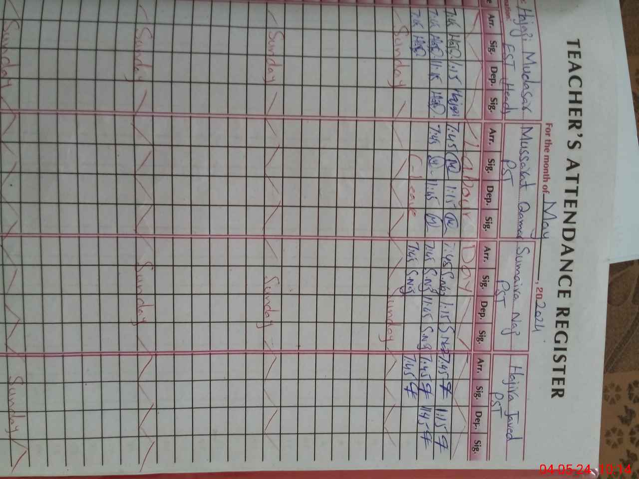 | Name: HA**** MU**** Designation: (School Headmaster's/Headmistress's) EST Phone/Cell Number: 03**** |