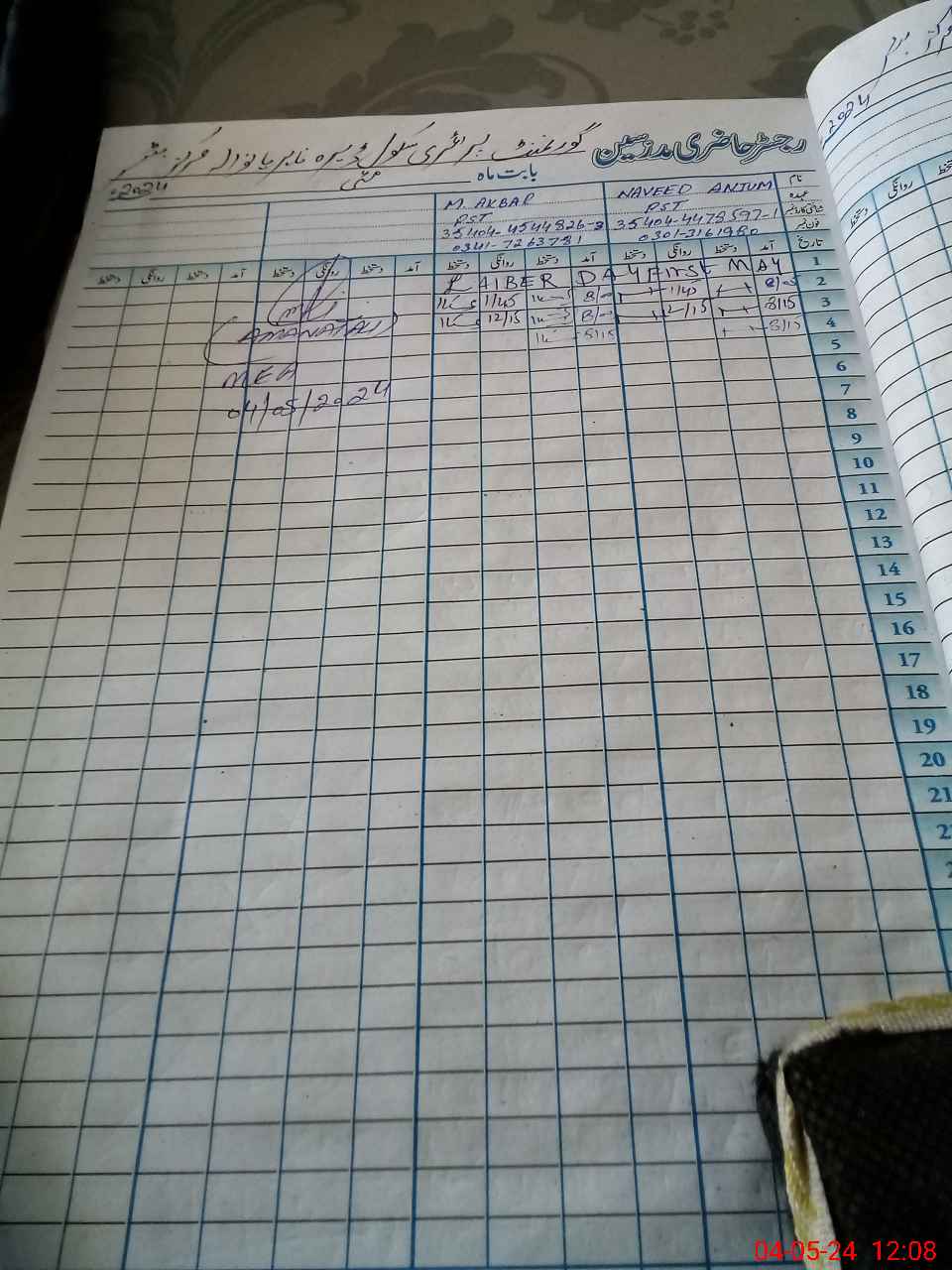 | Name: Na**** An**** Designation: (School Headmaster's/Headmistress's) PST Phone/Cell Number: 03**** |