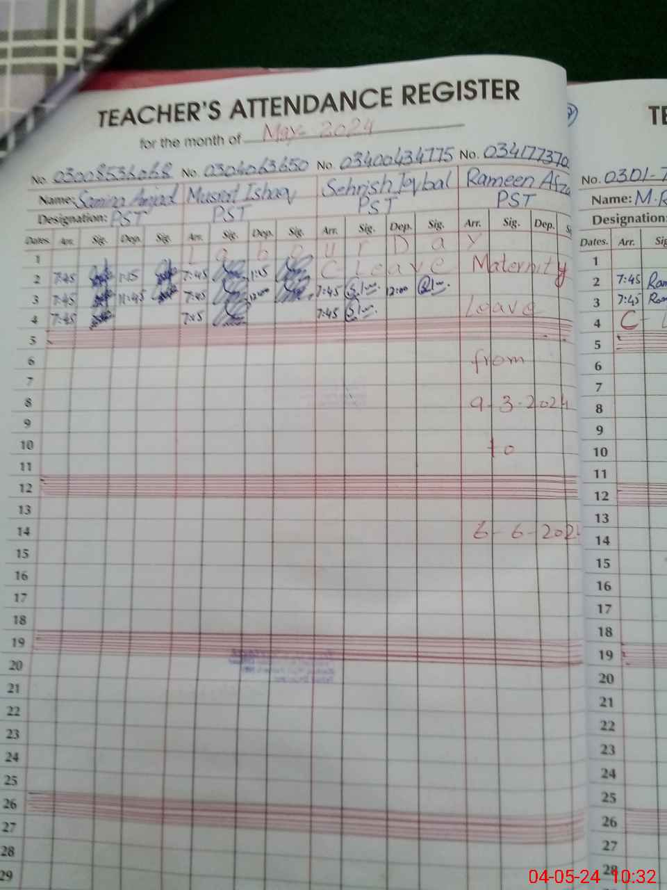 | 33**** | Ra**** Af**** | 1 | 30 | 0 | 0 | 30 | 0 | 0 | 0 | 0 | 0 | Maternity | |