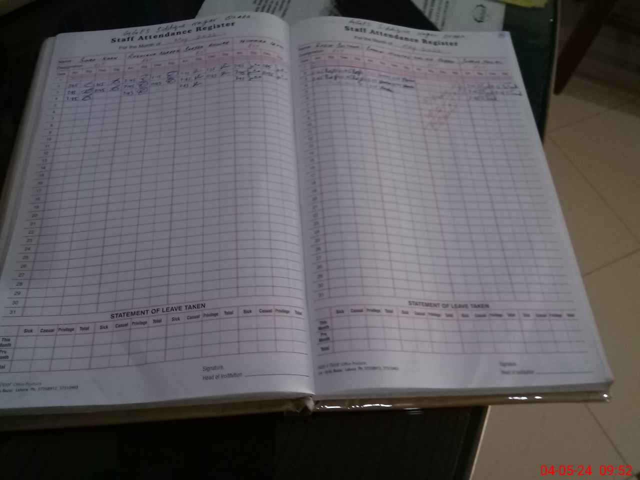 | Leave | Duty | Absent | Maternity | Medical | Ex- Pak |