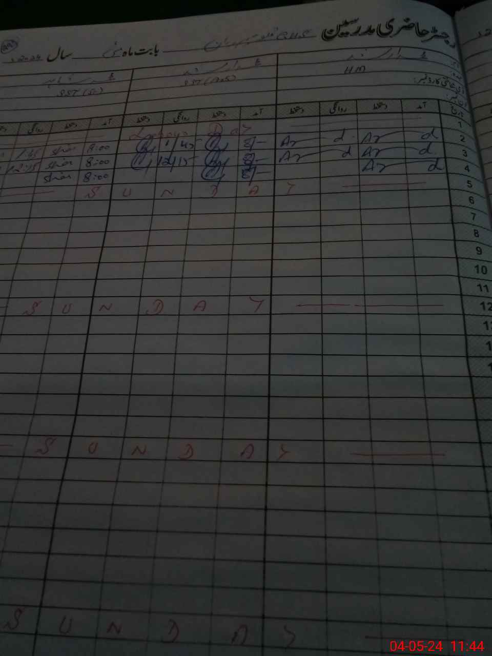 | CNIC | Full Name | Designation | R/C | Absence During Last Calender Month |