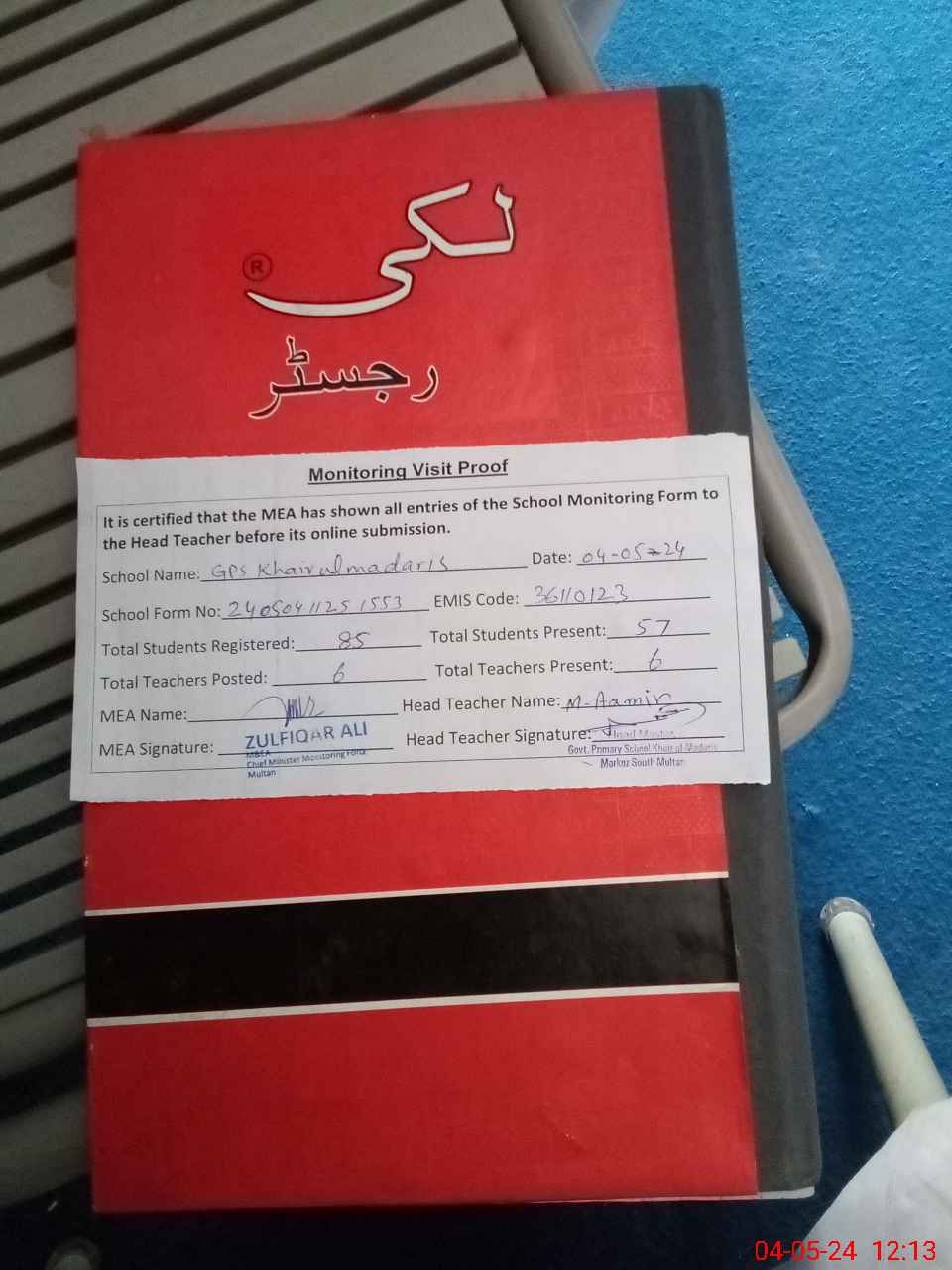| EMIS Code: 36110123 | Name of School: GPS KHAIR-UL-MADARIS AURANGZEB ROAD MOHALLA GAOWSHALA | |||