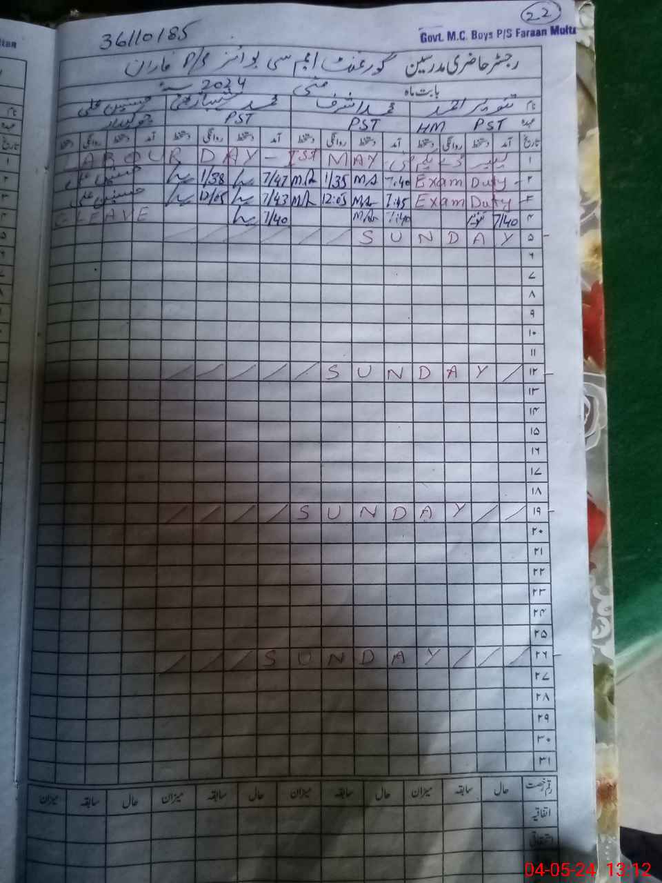 | 36**** | Hu**** Al**** | CHAUKIDAR | 0 | 0 | 0 | 0 | 0 | 0 | 0 | 0 | 0 | Casual | |