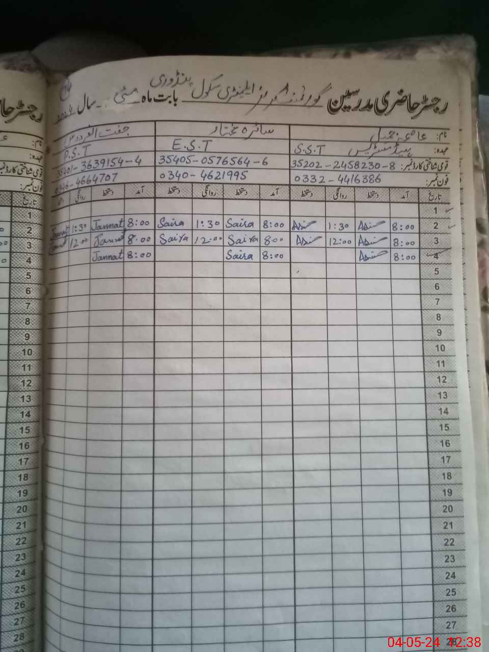 | Name: Bu**** Za**** Designation: (School Headmaster's/Headmistress's) EST Phone/Cell Number: 03**** |