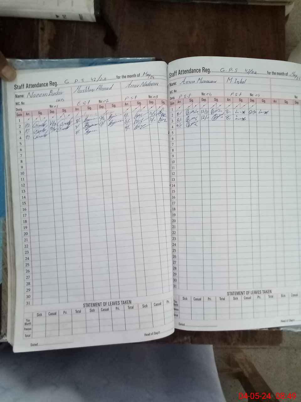 | 31**** | Mu**** Iq**** | PST | Regular | 0 | 0 | 0 | 0 | 0 | 0 | 0 | 0 | 0 | Absent (Un-Authorized) |
