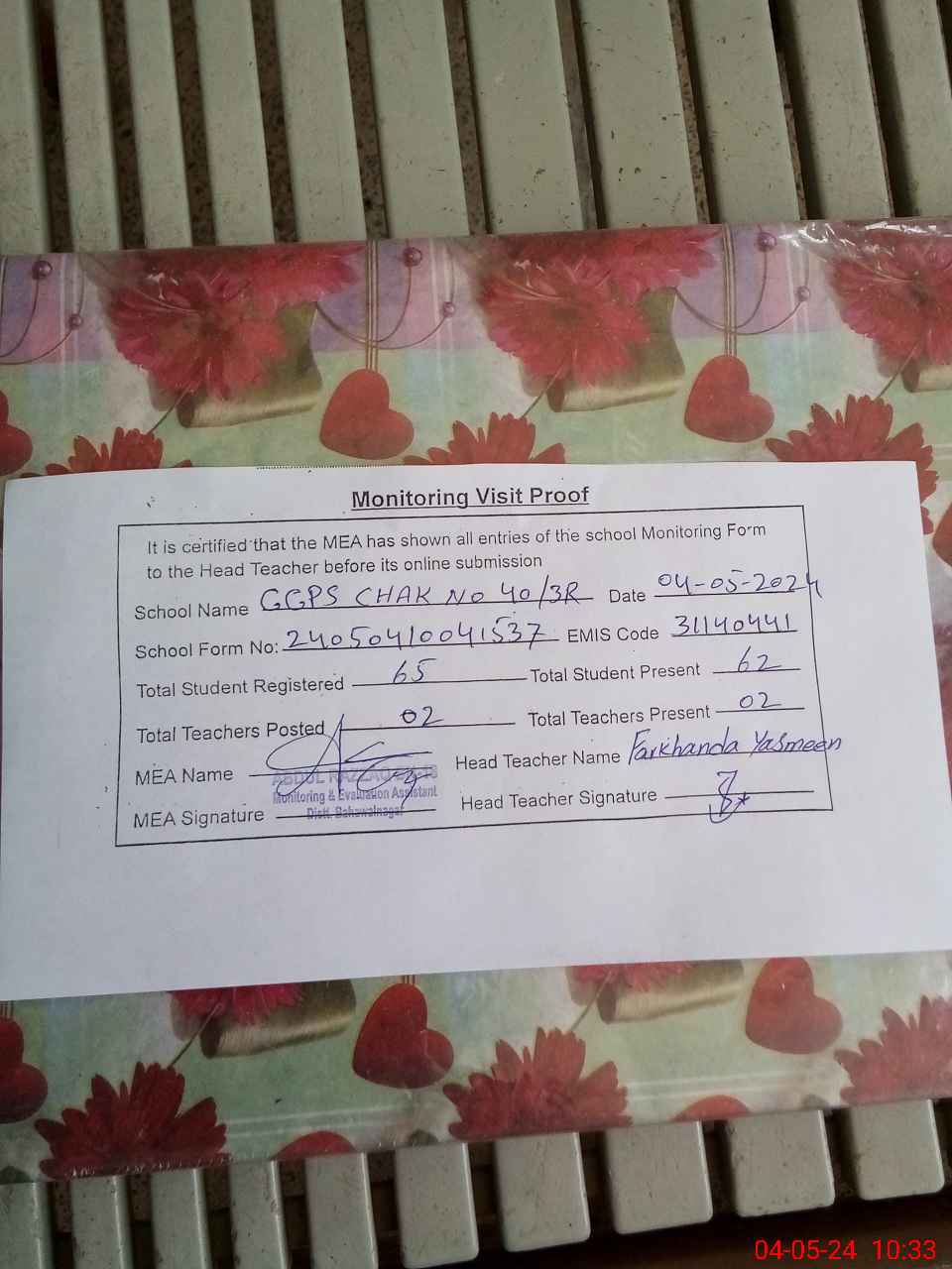 | Certified that this School was Inspected by the Undersigned MEA/DMO Today and the Information Stated Above is as Per Record. | |||||