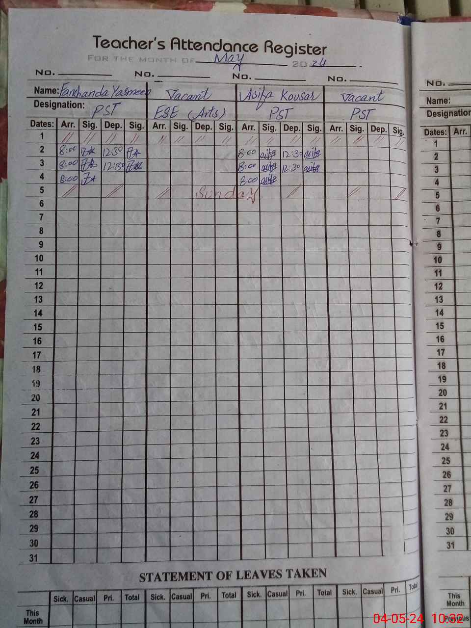 | Leave | Duty | Absent | Maternity | Medical | Ex- Pak |