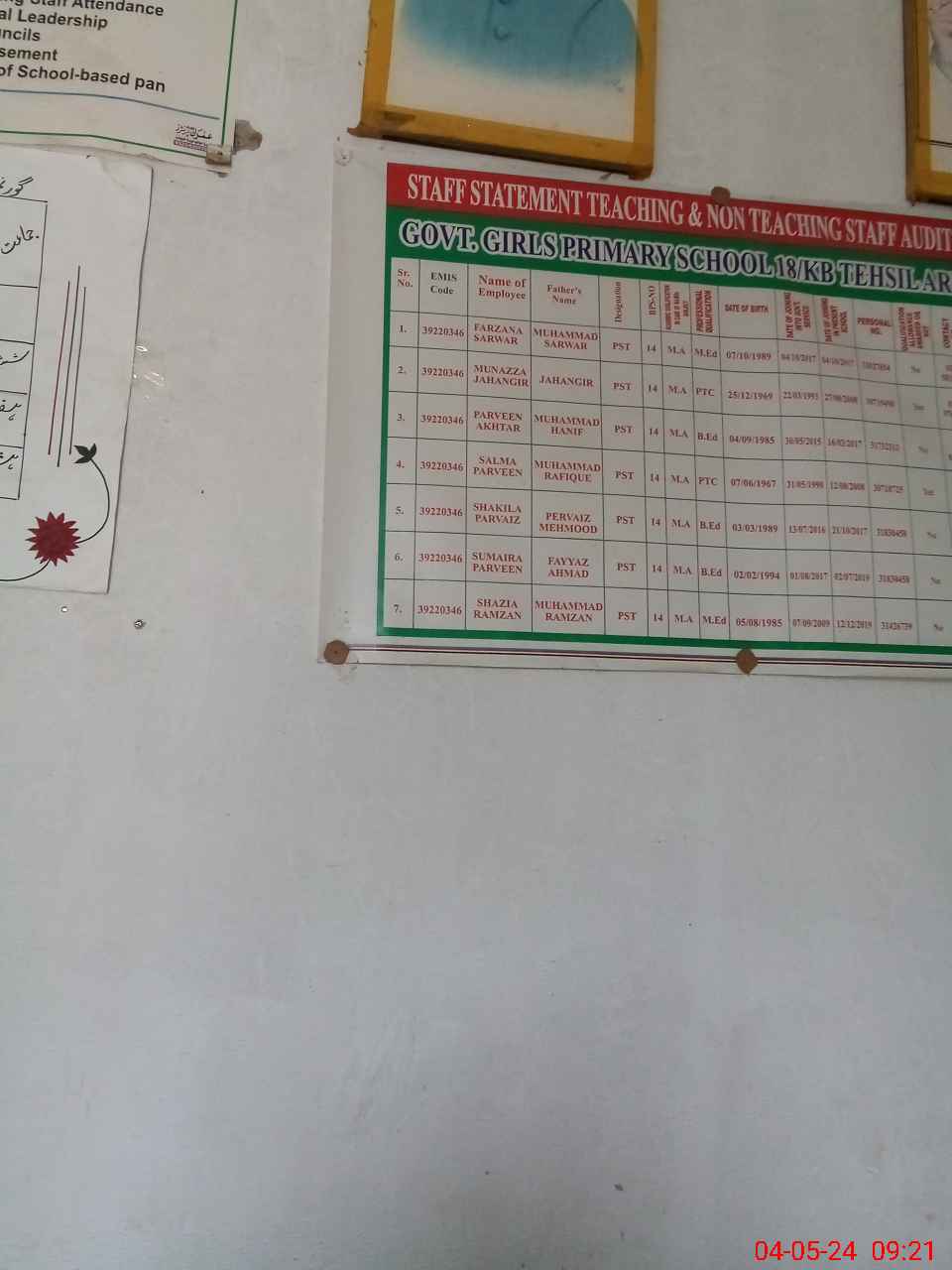| EMIS Code: 39220346 | Name of School: GGPS 18 KB | |||