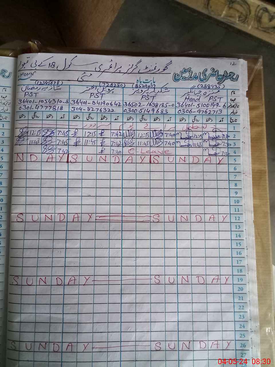 | Name: MU**** JA**** Designation: (School Headmaster's/Headmistress's) PST Phone/Cell Number: 03**** |