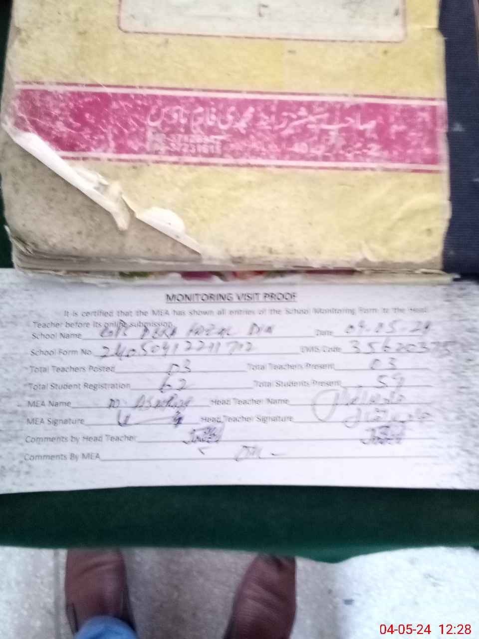 | EMIS Code: 35620375 | Name of School: GPS DERA FAZAL DIN | |||