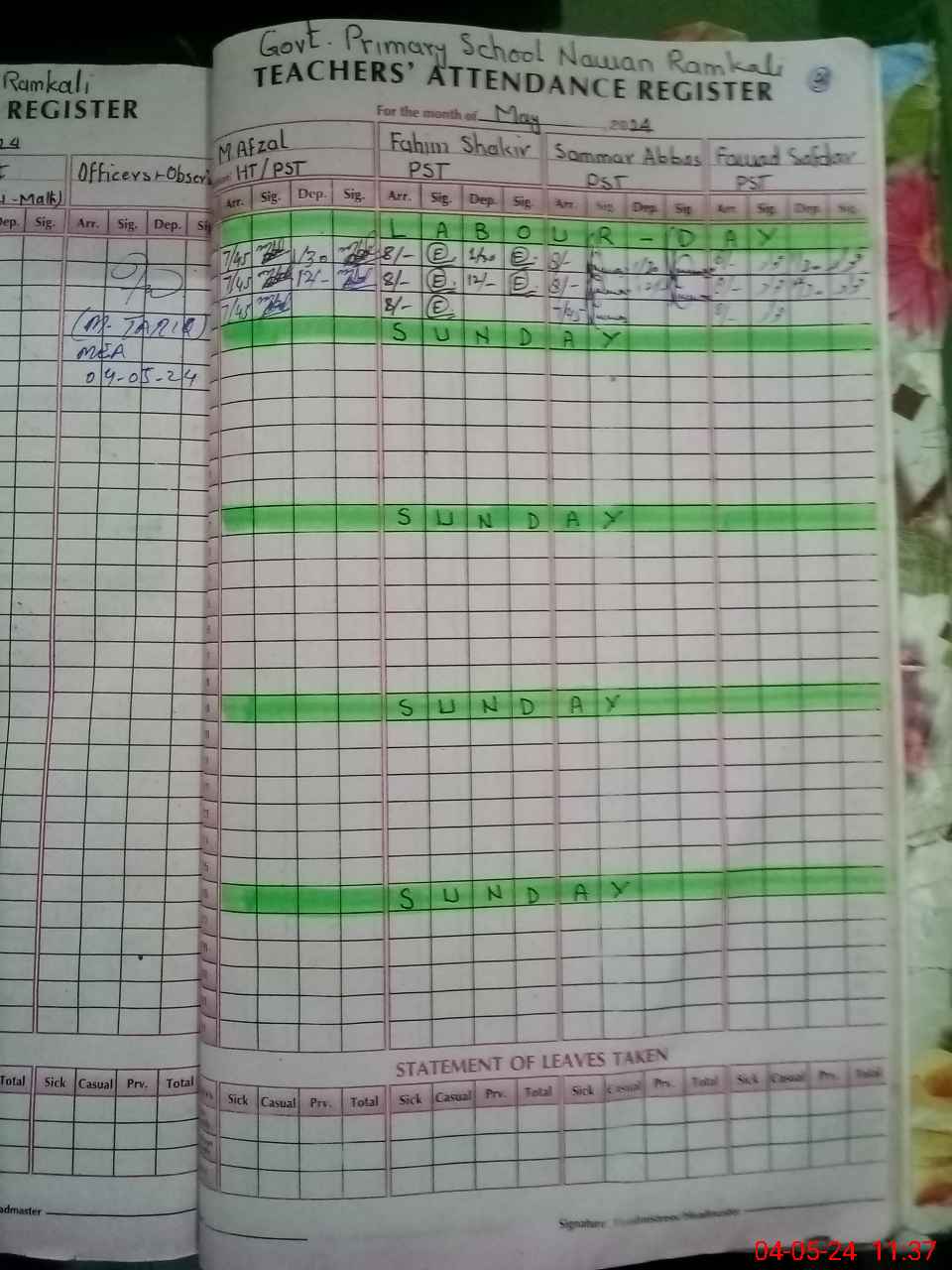 | Leave | Duty | Absent | Maternity | Medical | Ex- Pak |