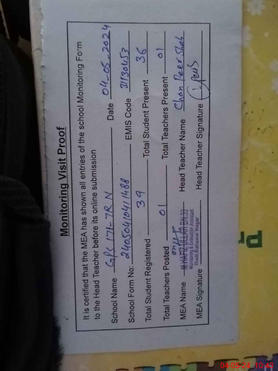 | EMIS Code: 31130453 | Name of School: GPS CHAK NO 171/7-R N | |||
