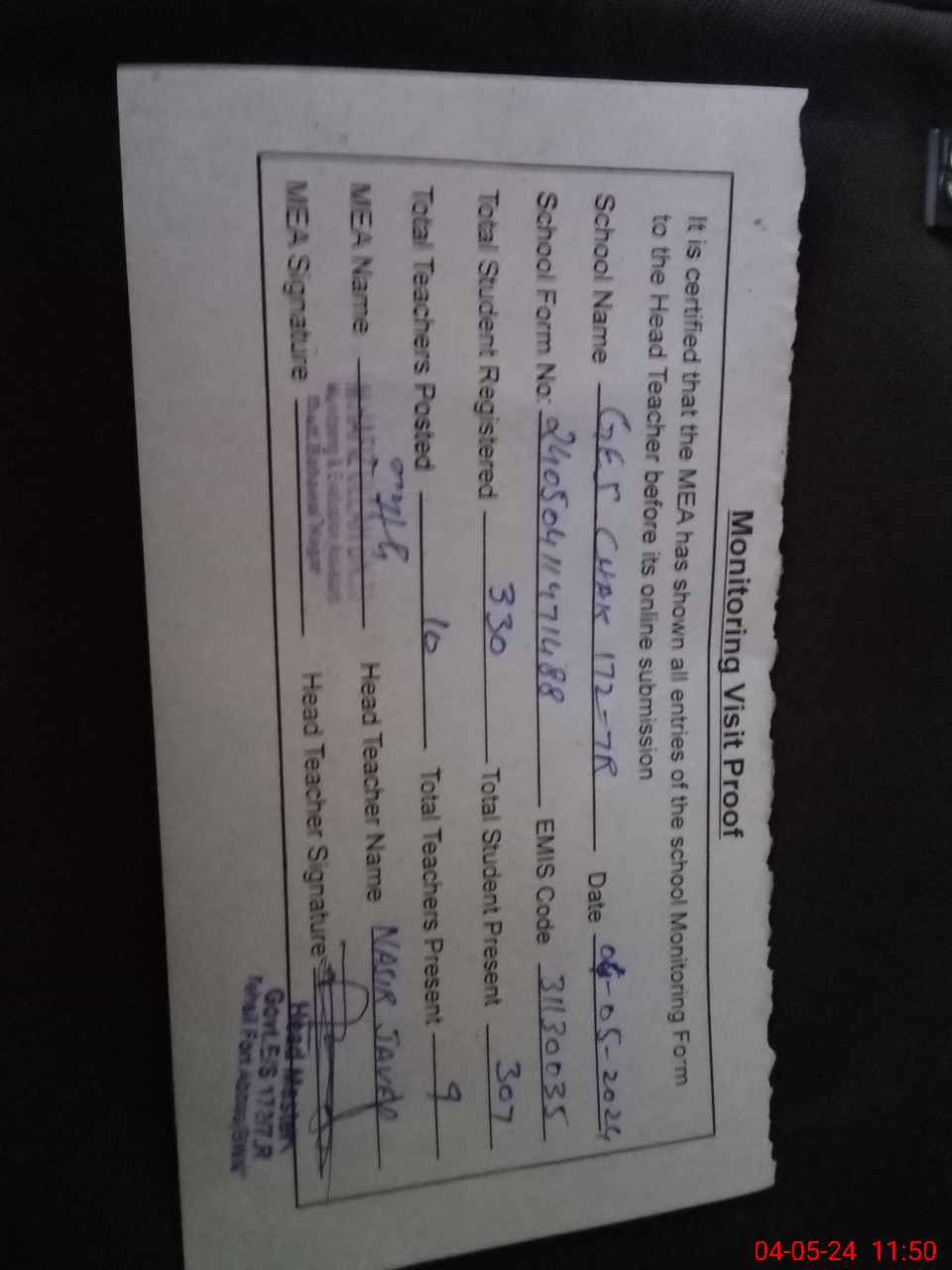 | EMIS Code: 31130035 | Name of School: GES CHAK 172/7-R | |||